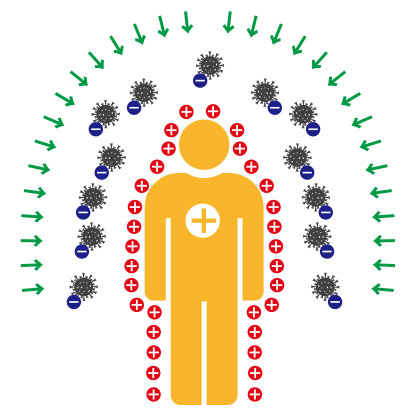 人間は「プラスの静電気」に帯電しやすく、ウイルスや花粉は「マイナスの静電気」に帯電しやすいという性質があるので、目に見えない大きさのウイルスや花粉は、人間の衣服に吸い寄せられ、それが呼吸器から入り、感染してしまうとケースがほとんどです。ですから『プラスの静電気」は身体に悪影響があると言われているのです。では人間の身体をプラスに帯電させないようにするにはどうすればよいのでしょう?