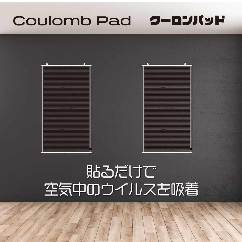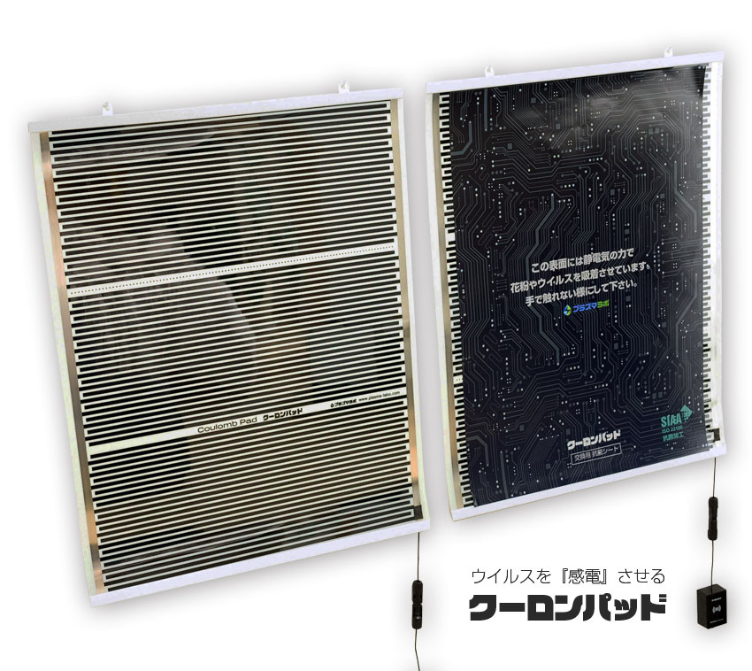 クーロンパッドとはプラズマラボにて開発した『静電気』の特性を応用した『空気清浄機能+集塵フィルム』です。